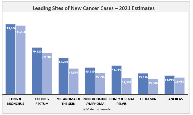 Abb.: Führende Lokalisationen von neuen Krebsfällen – Schätzungen für 2021