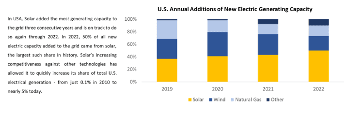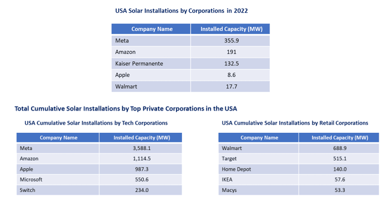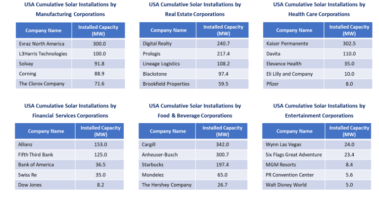 Der jährliche Bericht „Solar Means Business“ der SEIA zeigt, dass große US-amerikanische Unternehmen wie Meta, Amazon, Apple, Walmart und Microsoft in zunehmendem Maße in Solarenergie investieren. Bis Juni 2022 haben die größten Unternehmen der Solarbranche in Amerika fast 19 GW Kapazität an fast 50.000 verschiedenen Standorten im ganzen Land installiert. Der dezentrale Solarausbau trug maßgeblich zum Wachstum der Solarbranche bei, wobei 77 % der Kapazität seit 2020 dezentral installiert wurden. Fast 19 Gigawatt (GW) Solarkapazität wurden mit kommerziellen und betrieblichen Abnehmern installiert, von denen mehr als die Hälfte seit 2020 online ist.