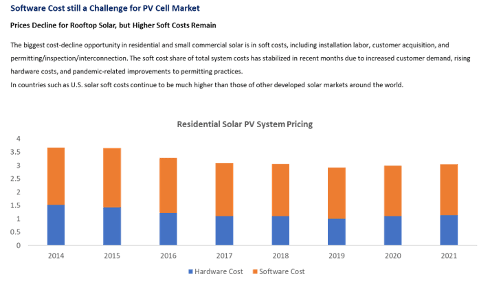 Darüber hinaus werden das Erreichen von Netto-Null-Emissionszielen in verschiedenen Ländern der Welt und das steigende Verbraucherbewusstsein für grüne Energie als Katalysatoren für das globale Wachstum von Photovoltaikzellen (PV) im Prognosezeitraum wirken. Es funktioniert. Um das politische Ziel der Netto-Null-Emissionen bis 2050 zu erreichen, muss die Solarenergie von 2022 bis 2030 jährlich um 25 % wachsen. Länder auf der ganzen Welt investieren massiv in erneuerbare Energien, um ihre Ziele für erneuerbare Energien zu erreichen, und der Solarenergiemarkt ist eine der wichtigsten Energiequellen, die im letzten Jahrzehnt einen massiven Boom erlebt hat. Beispielsweise hat Solarenergie in den Vereinigten Staaten, einem der führenden Solarenergieländer, allein im letzten Jahrzehnt ein durchschnittliches jährliches Wachstum von 33 % verzeichnet. Dank einer starken Bundespolitik wie der Solar Investment Tax Credit, den schnell sinkenden Kosten und der steigenden Nachfrage des privaten und öffentlichen Sektors nach sauberem Strom sind im ganzen Land mittlerweile mehr als 140 Gigawatt Solarkapazität installiert, was ausreicht, um 25 Millionen Haushalte mit Strom zu versorgen.