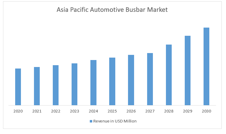 The Asia Pacific automotive busbar market is expected to grow at a strong CAGR of around 22% during the forecast period (2022-2030). The factor driving this growth region is the large number of aspirational young population and increasing income driving up the consumption further supported by increasing pace of urbanization and rising per capita GDP.