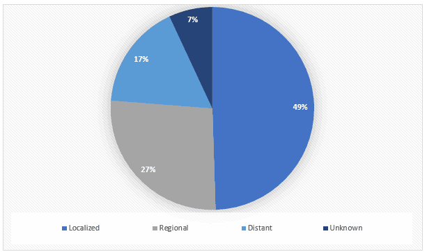 Fig1: Percent of Cases by Stage at Diagnosis: Laryngeal Cancer, U.S., 2023