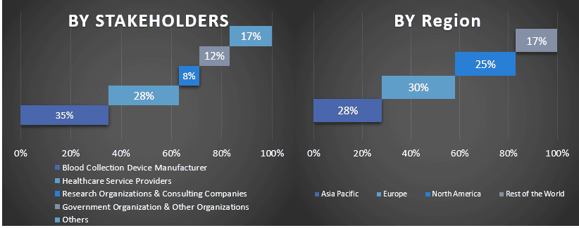 Analyzing the historical market, estimating the current market, and forecasting the future market of the blood collection devices market were the three major steps undertaken to create and analyze the adoption of blood collection devices in major regions globally. Exhaustive secondary research was conducted to collect the historical market numbers and estimate the current market size. Secondly, to validate these insights, numerous findings and assumptions were taken into consideration. Moreover, exhaustive primary interviews were also conducted, with industry experts across the value chain of the blood collection devices market. Post assumption and validation of market numbers through primary interviews, we employed a top-down/bottom-up approach to forecasting the complete market size. Thereafter, market breakdown and data triangulation methods were adopted to estimate and analyze the market size of segments and sub-segments of the industry pertains to. Detailed methodology is explained below: